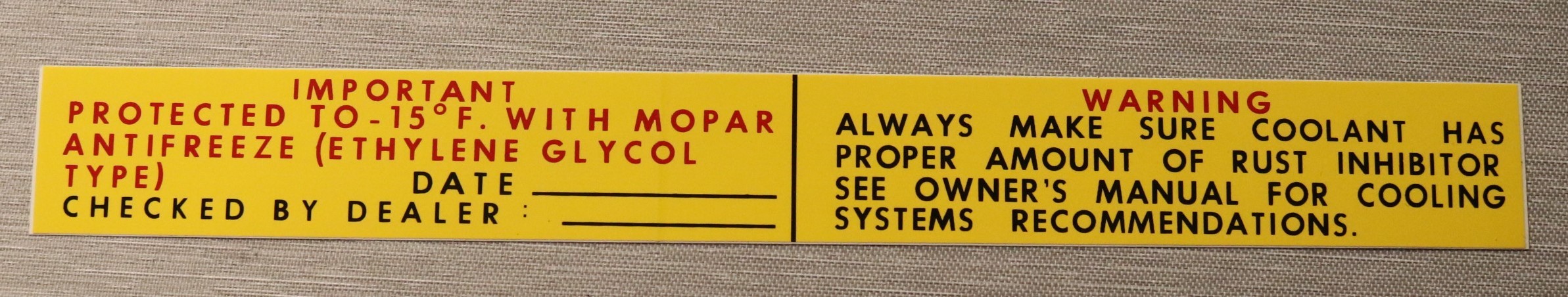 Voltage Regulator Warning Tag 1955-64 Mopar