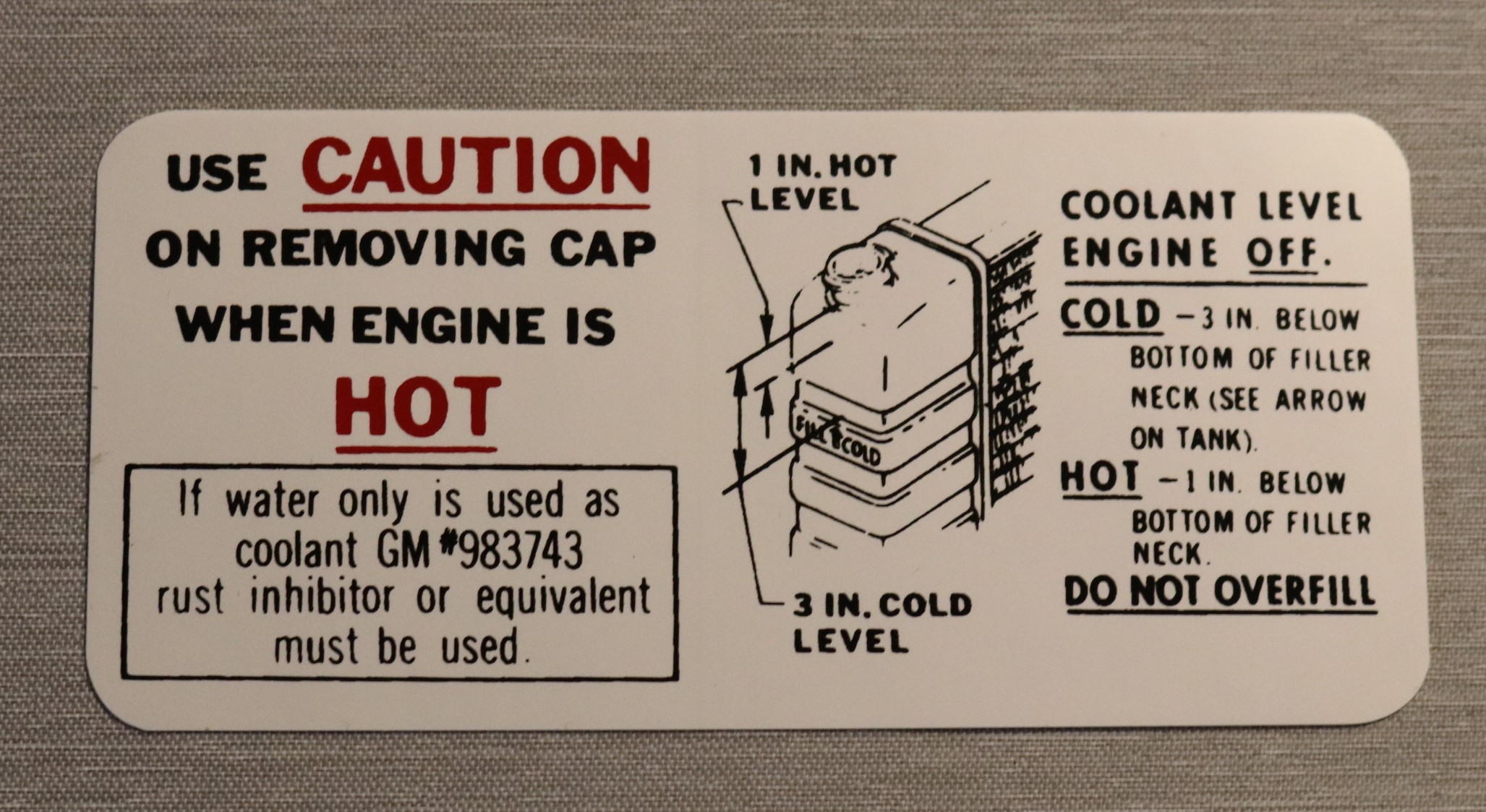 Caution Cooling Dekal 1964-65 Oldsmobile & 1965-67 Pontiac