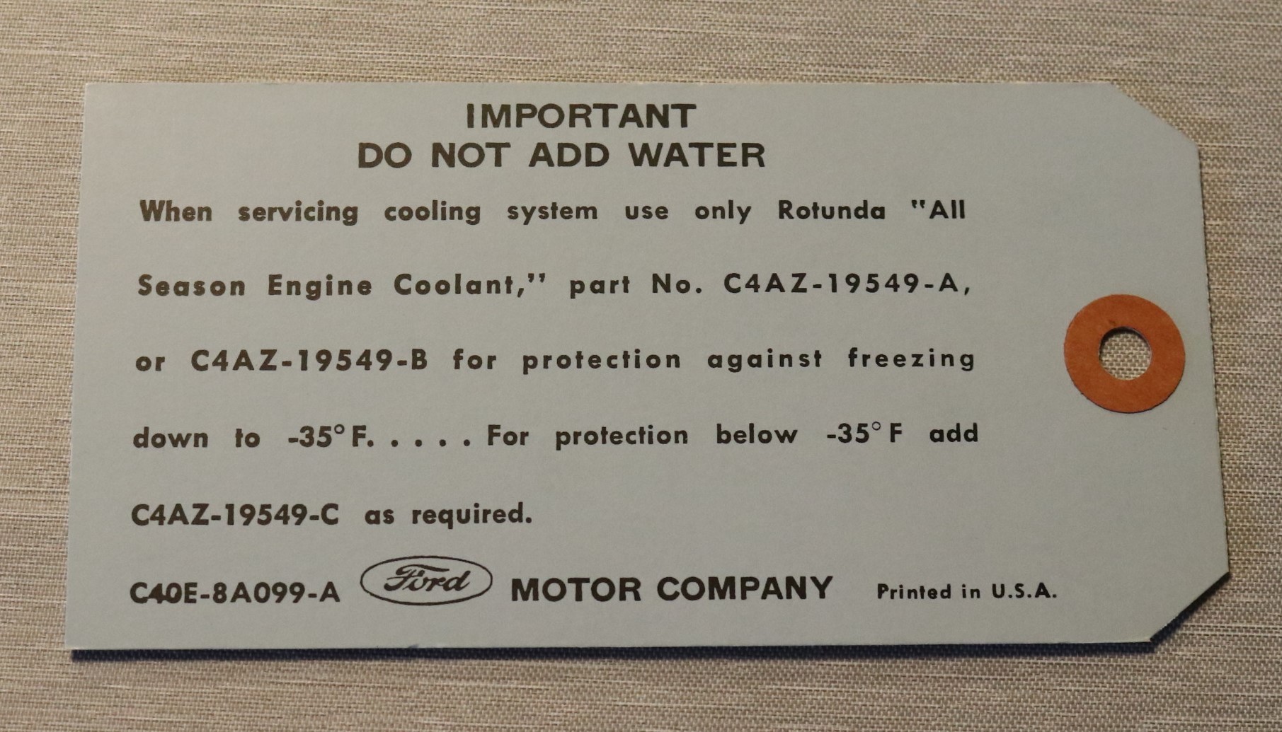 Cooling System Tag