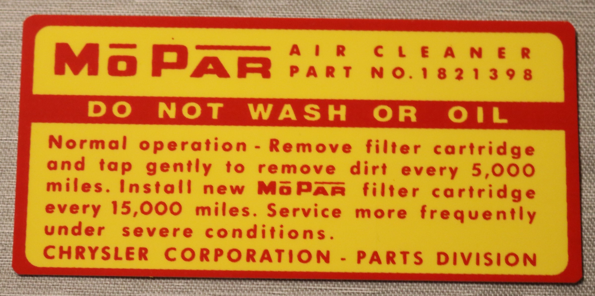 Service Inst. Dekal 1957-62 Mopar V8-4V