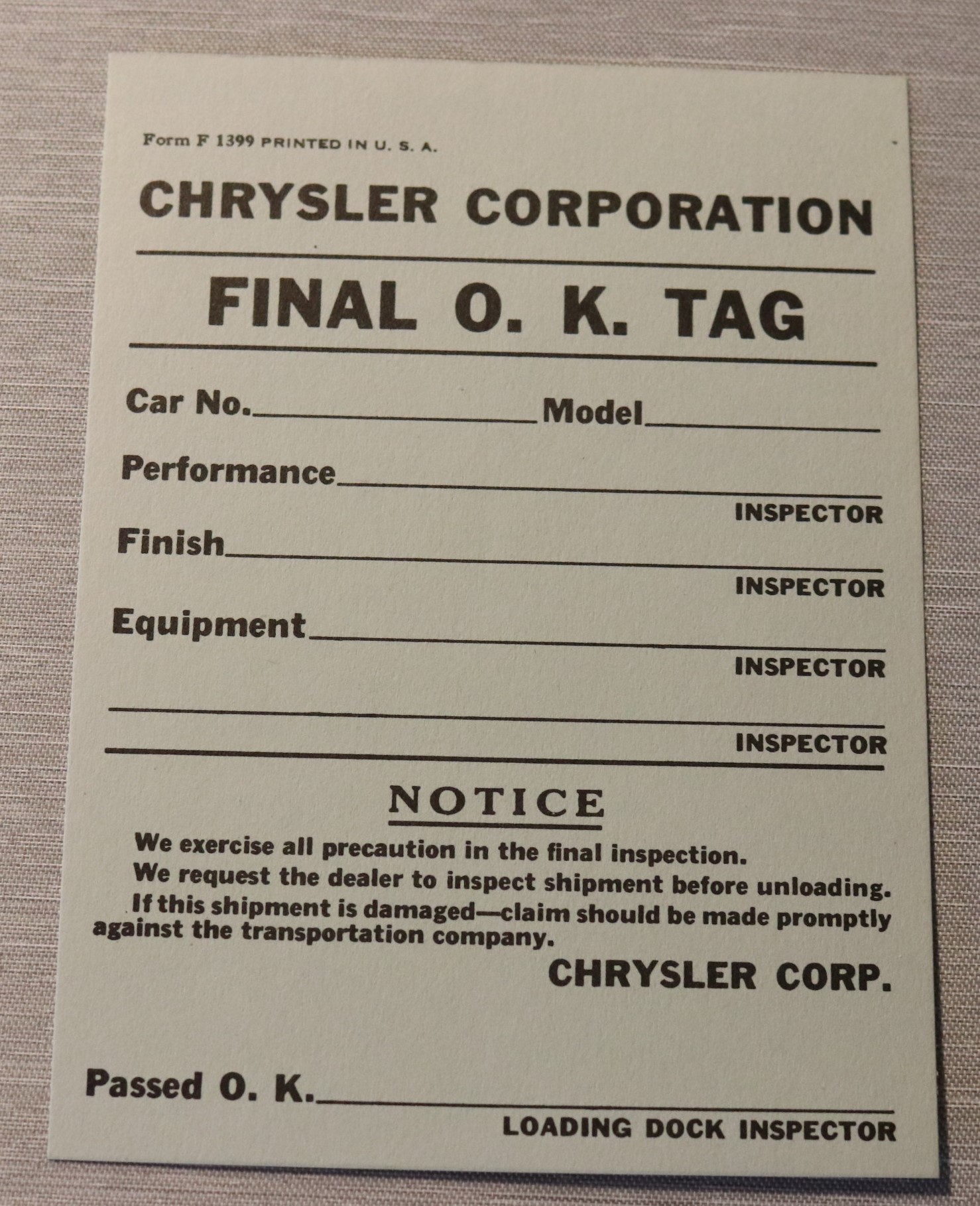 Ok Inspection For Delivery