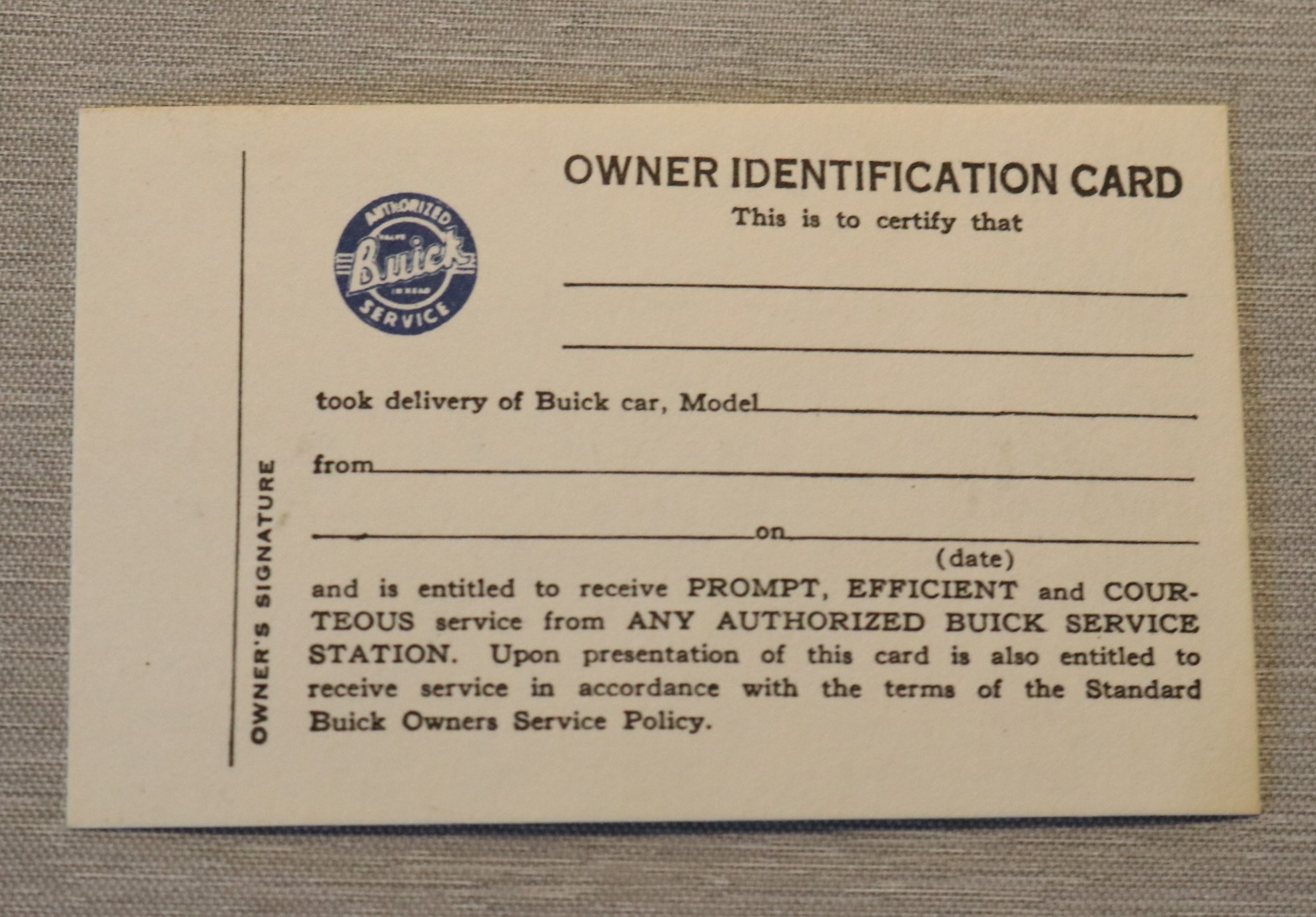 Owners Indification Card