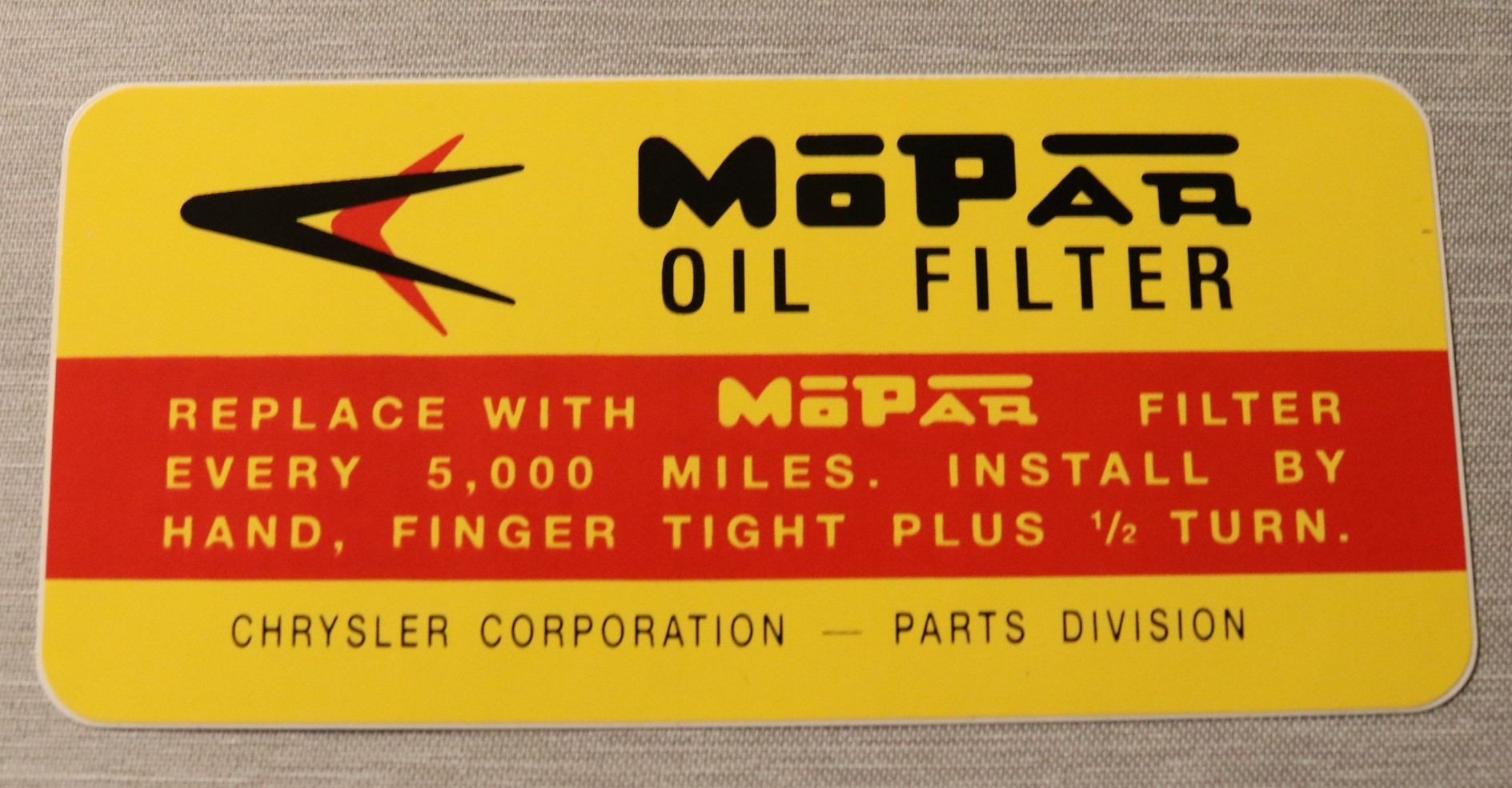 Oljefilter Dekal 1957-65 Mopar