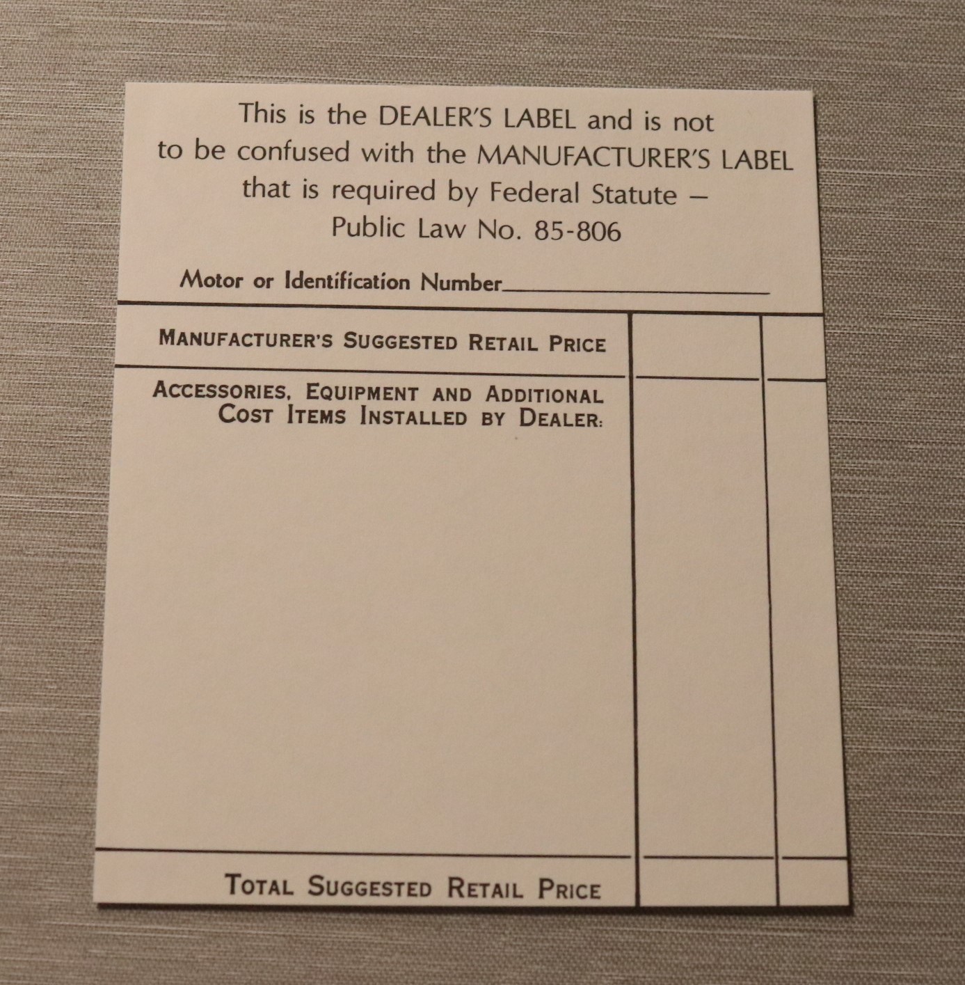 Dealer Installed Accessory Price Stick
