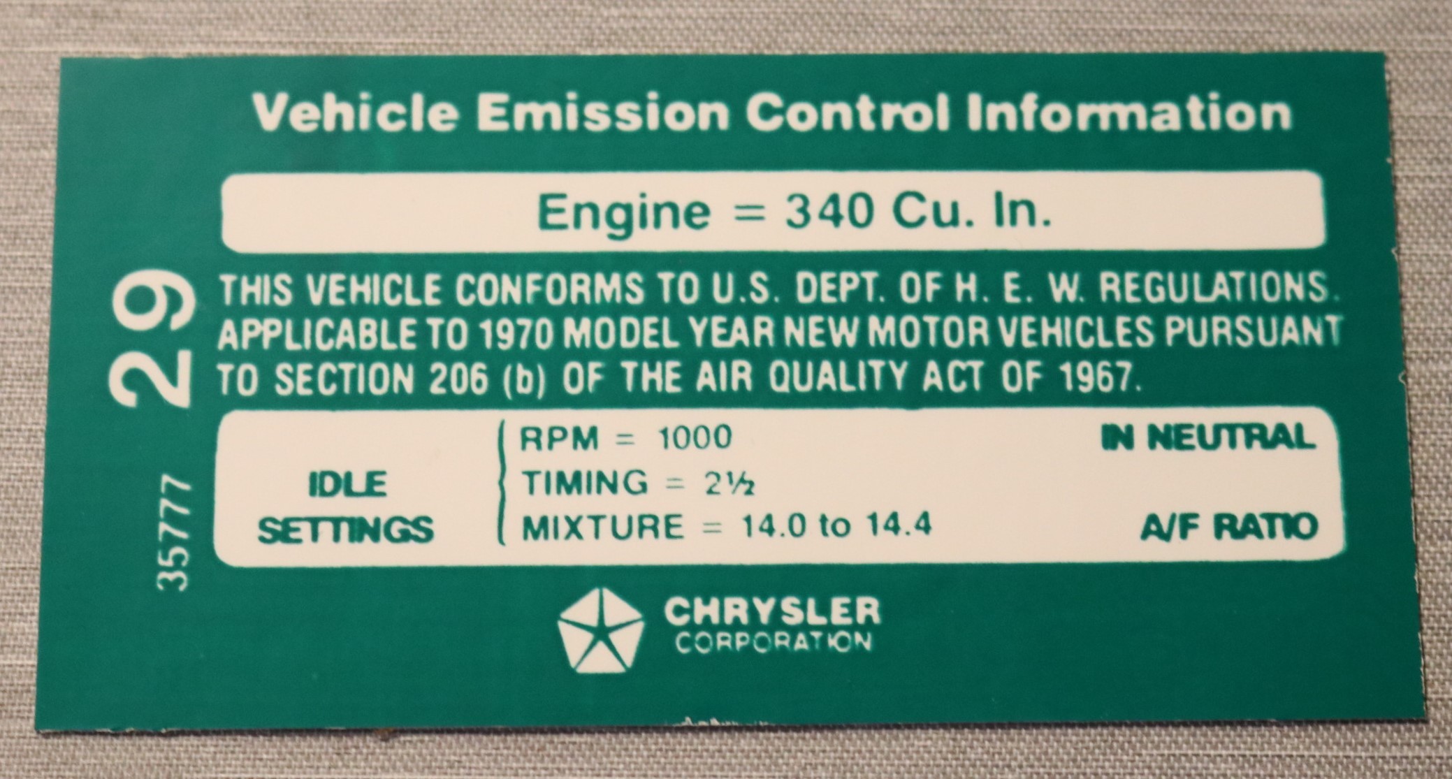 1970 Mopar 340-4V M/T efter 1-1-70