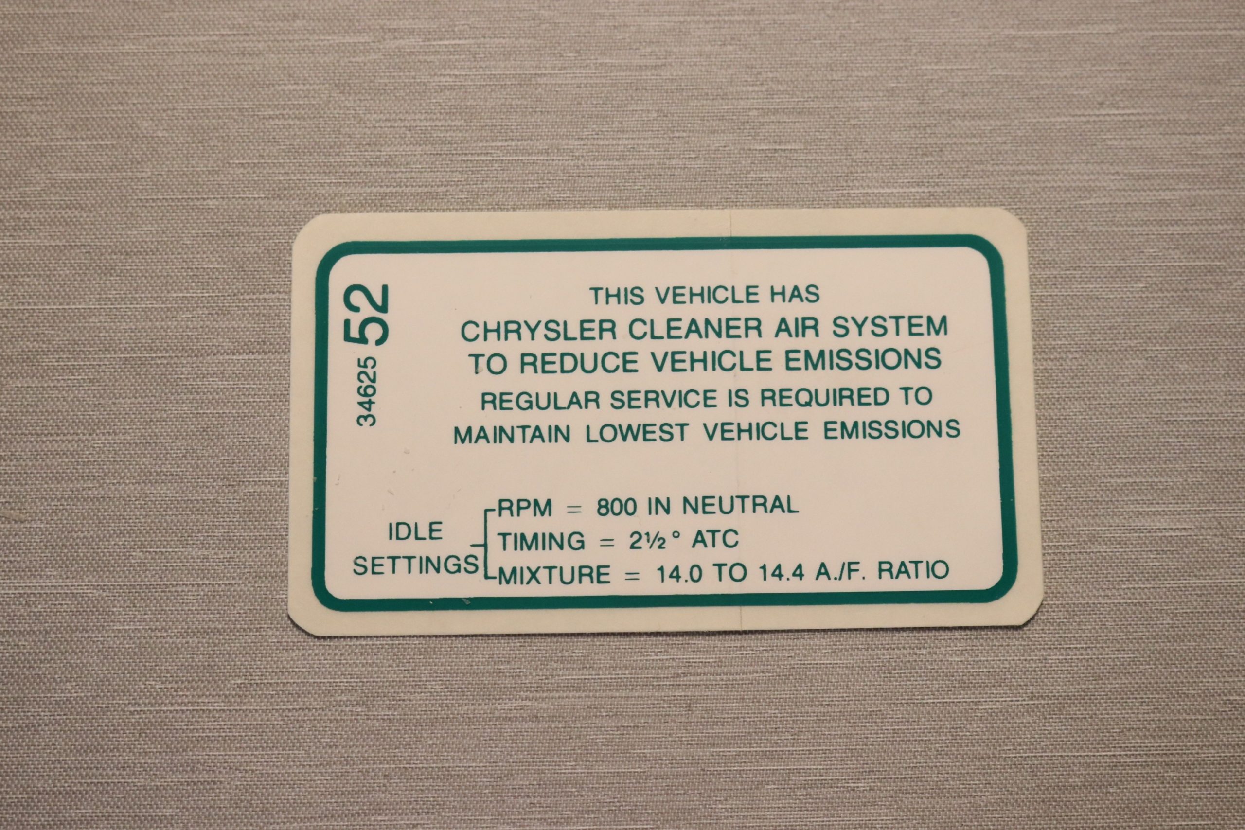 Generator Caution Tag 1955-64 Mopar