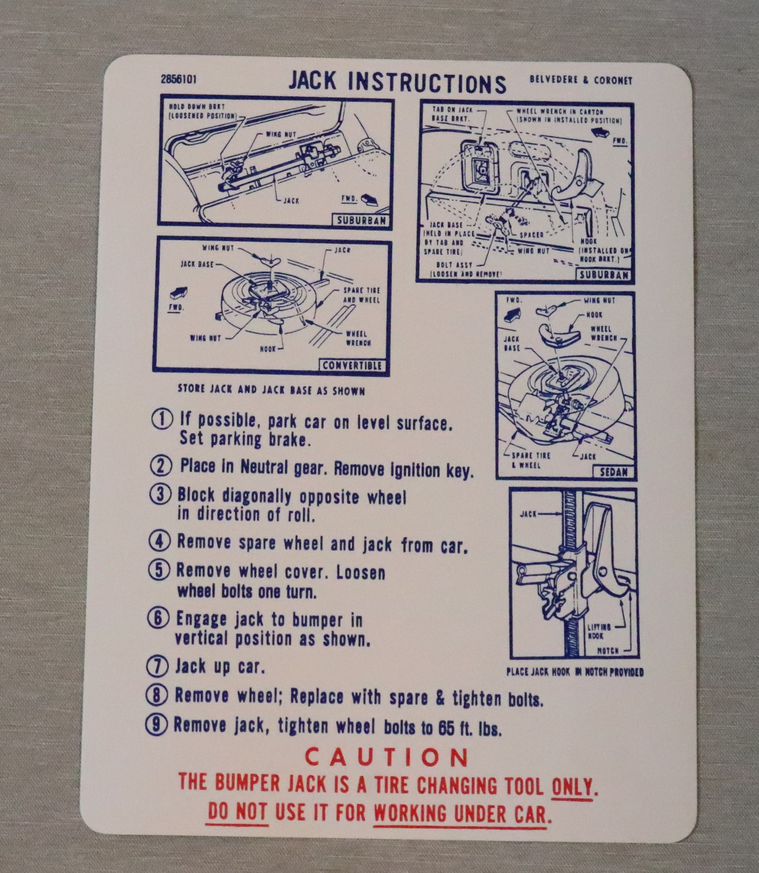 Häfte som förvaras tillsammans med instruktionsboken i handskfacket 1955-60 Chrysler