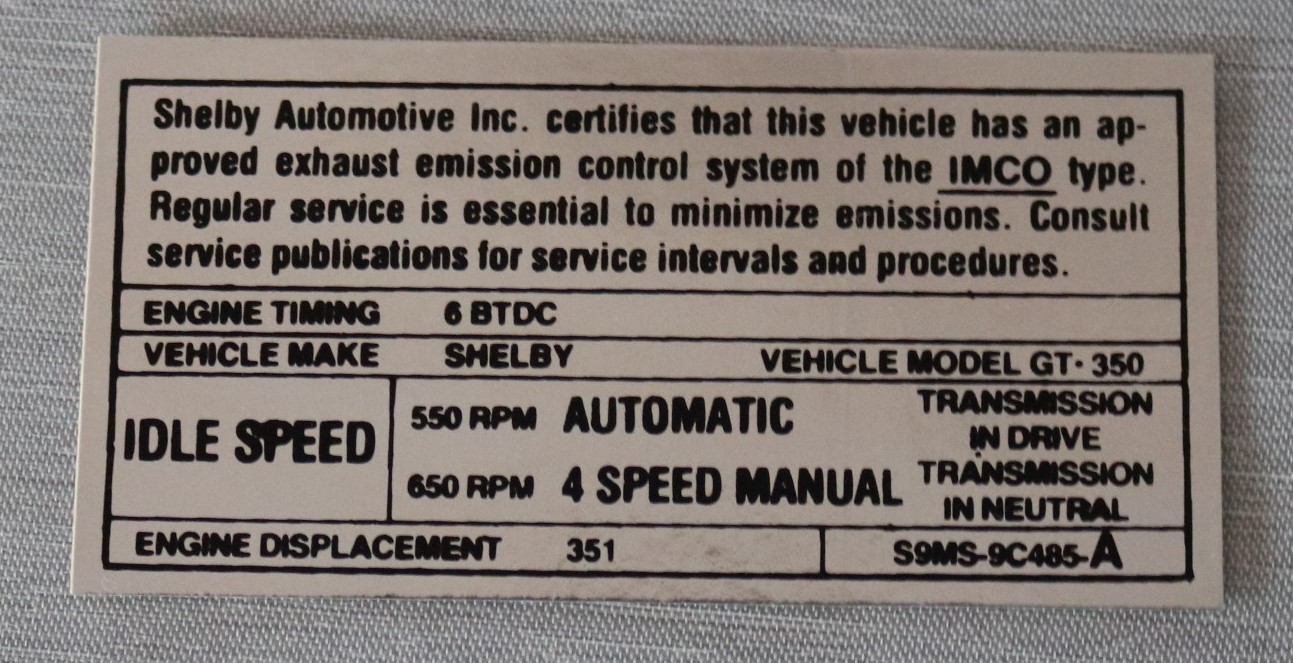 Shelby GT 350 A/T M/T 1969-70