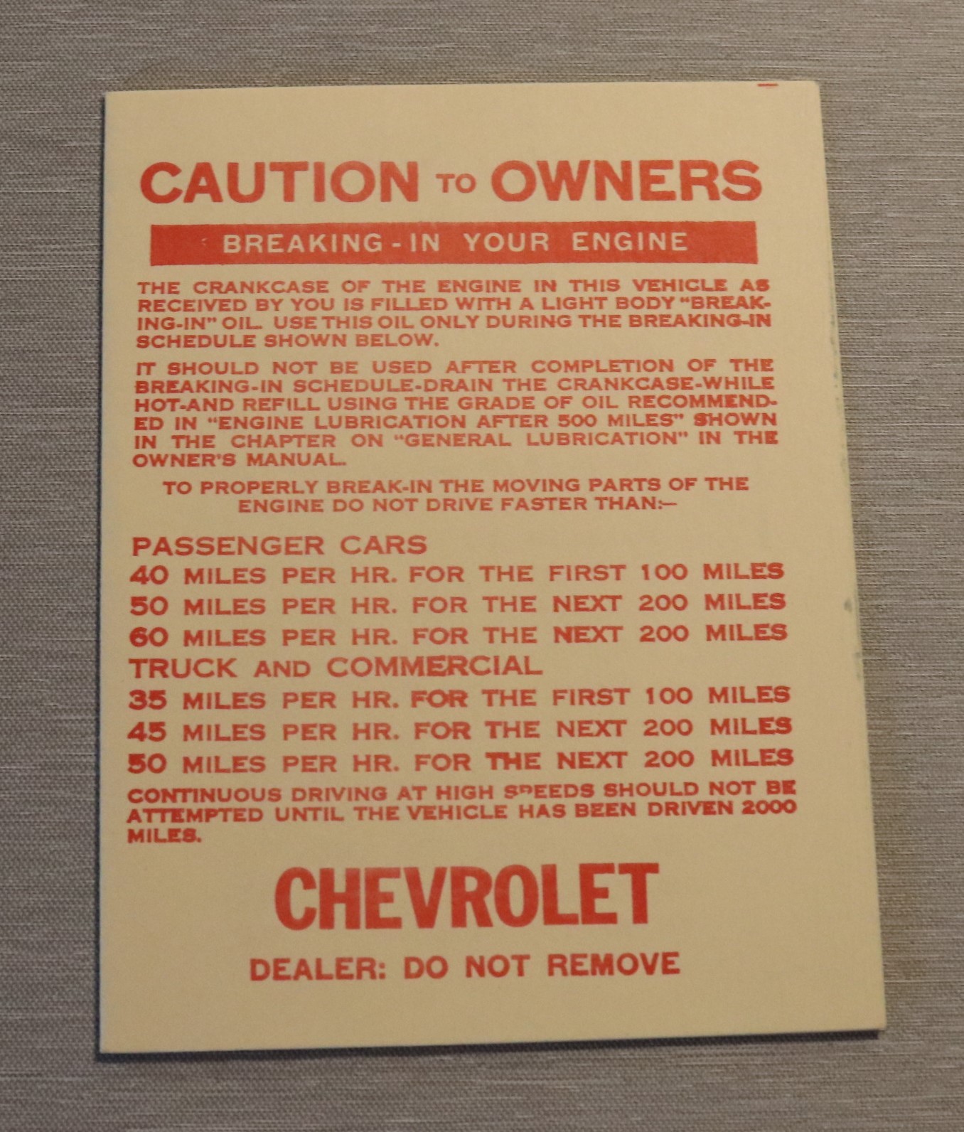 Enging Break-In Card