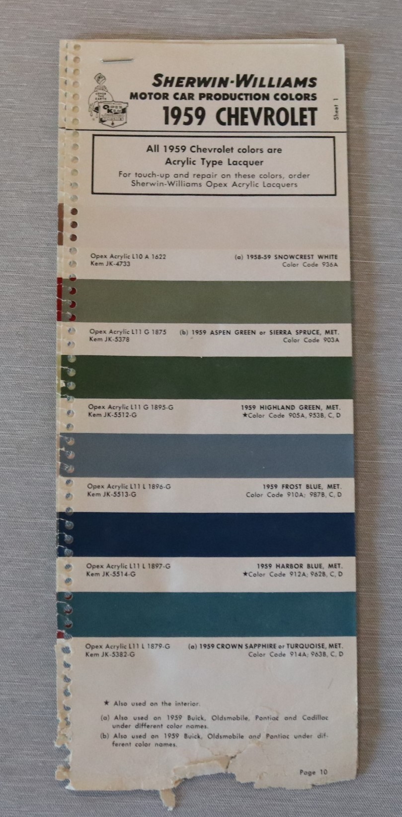 Färgkarta Chevrolet 1959