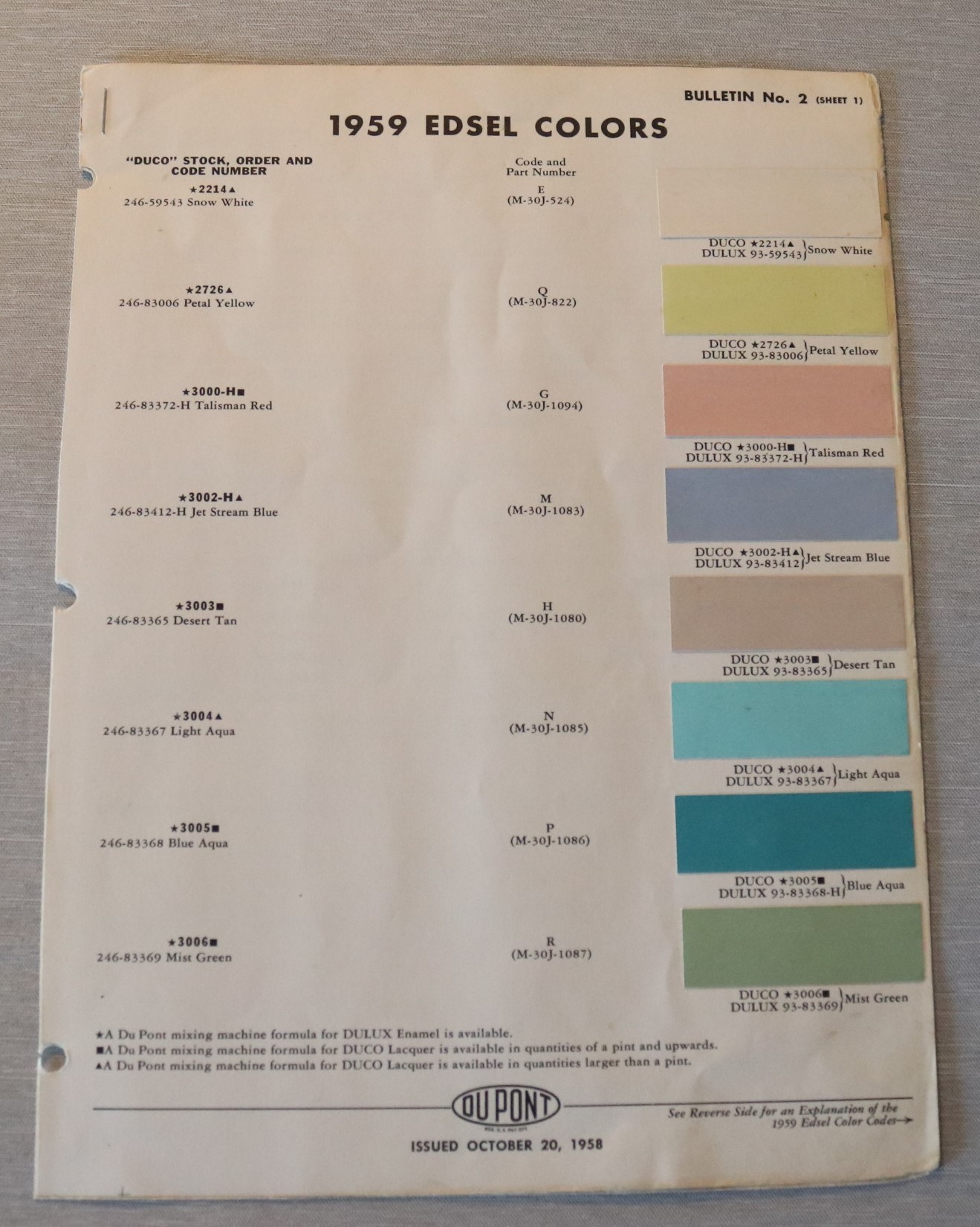 1959 Edsel Litet häfte på 4 sidor där man fyller i tankningar etc.