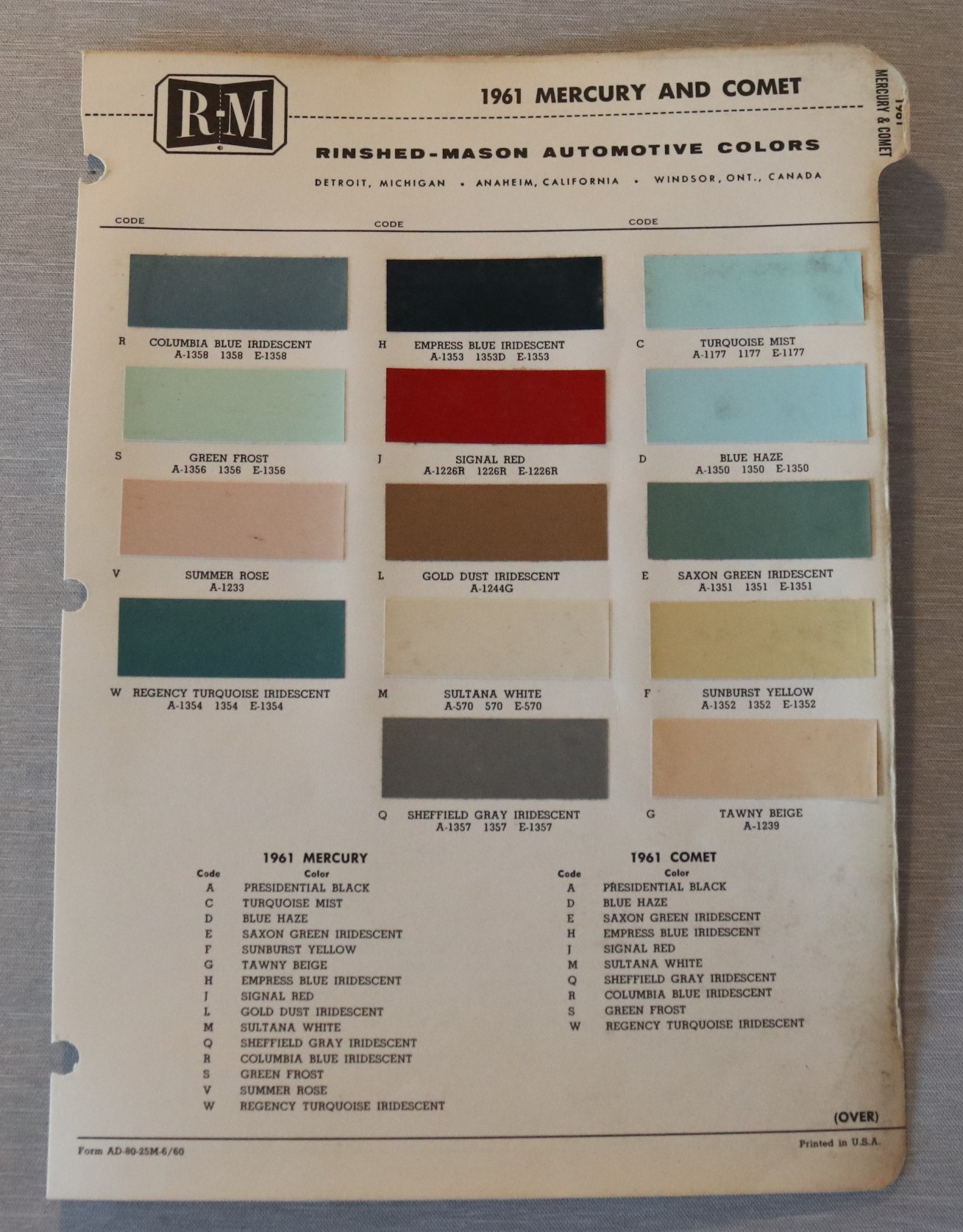 1961 Comet 1961 Mercury 1961 Continental Storlek: 16 x 10cm