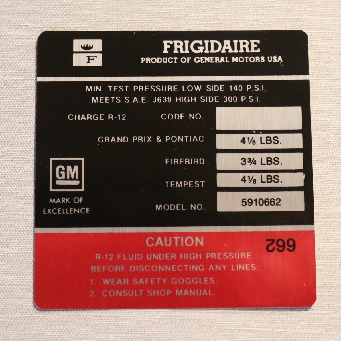 Frigidaire Air Comp. Dekal