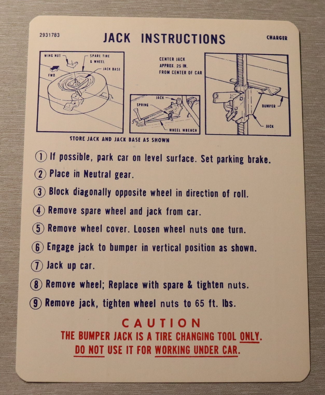 Häfte som förvaras tillsammans med instruktionsboken i handskfacket 1955-61 Plymouth