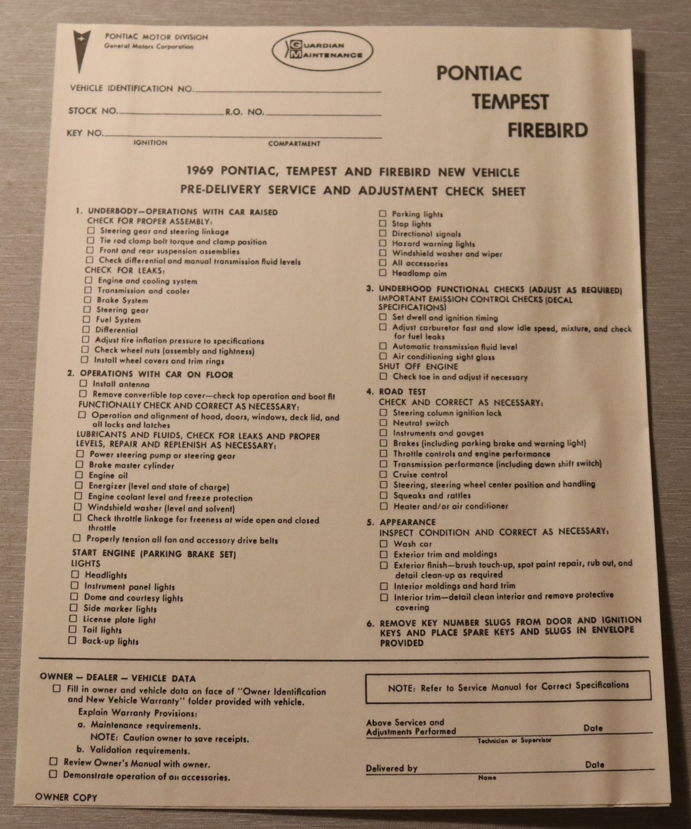 New Vehicle Insp. Sheet
