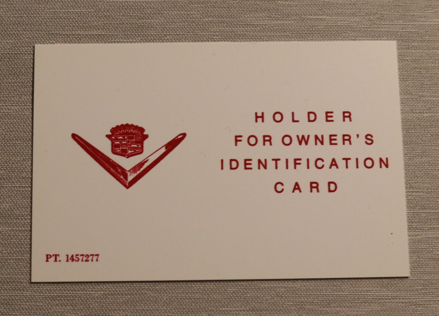 Owners I.D Plastic Card & Overlay