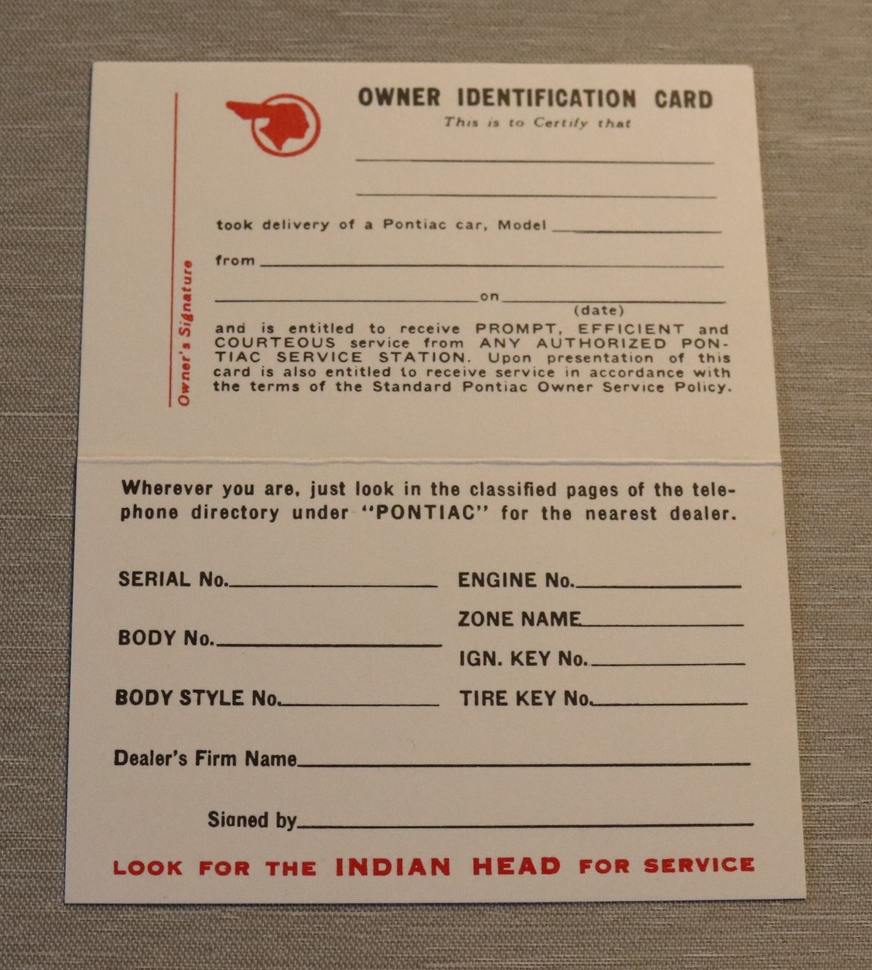 Owners Identification Card