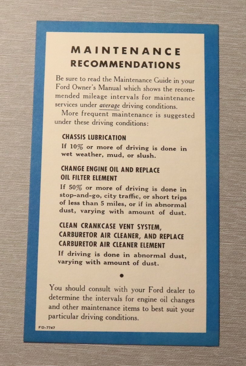 Owners Manual Maint Sheet