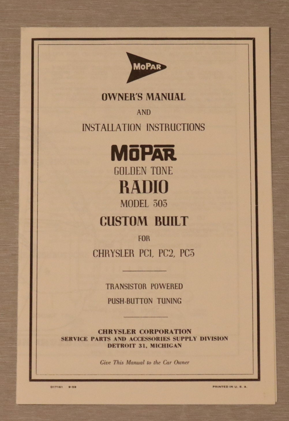 Radio Owners Manual 1960 Chrysler