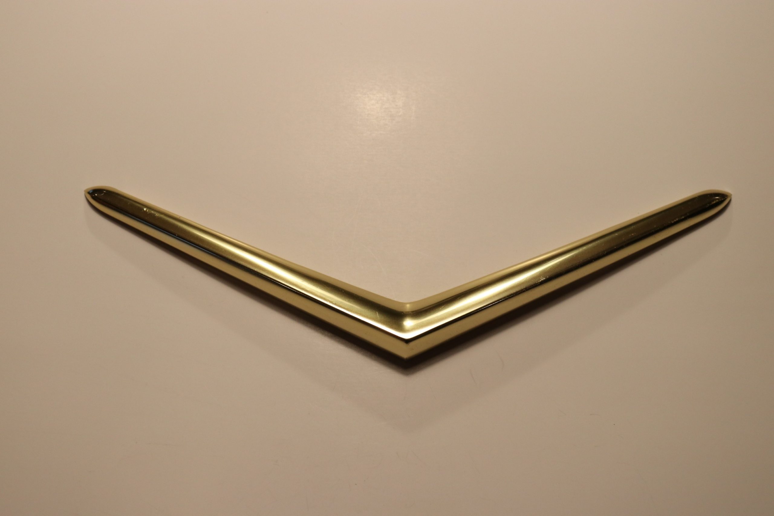 Guldfärgat v-emblem i grillen