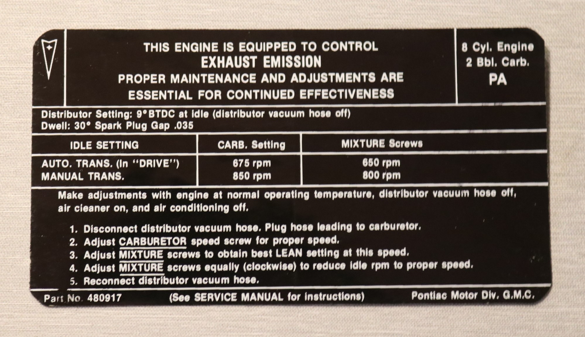 V8-2BBL Carb. A/T & M/T 1970 Pontiac